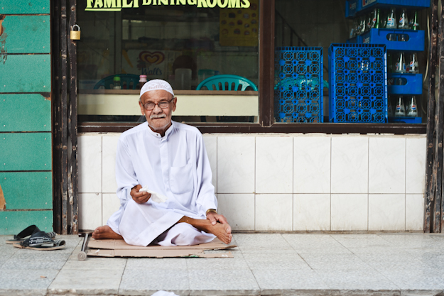 رجل مسن يجلس في مكانه المعتاد اليومي