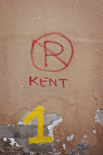 مكان محجوز للوقوف في أحد العمارات القديمة لشخص يدعى كينت