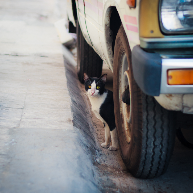 هذه هي المرة الأولى في حياتي التي أصادف بها قط ذو أعين ملونة مختلفة ( أخضر – أصفر ) ! وقد حصل هذا في هذا الشارع، كانت لقطة لم أستطع أن أجعلها تمضي !
