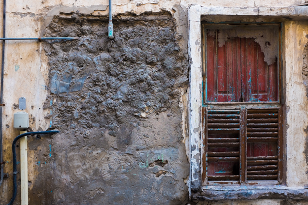 Closer capture for the window and the wall, you can see how the long years affected it
