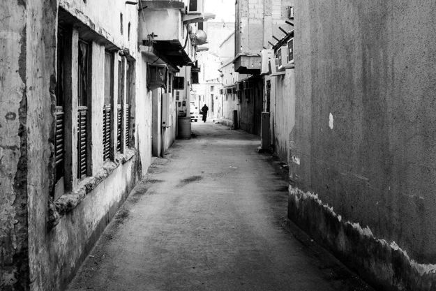 أحد الممرات الضيقة والتي تظهر على اليمين بيت قديم