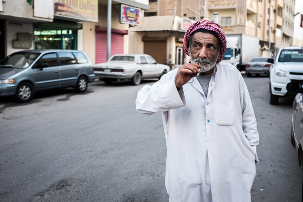 I ran across this saudi old man walking while he was lighting his cigarette