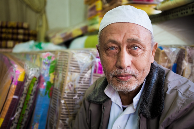 Old man from Yemen works in this shop for a long time, I was amazed by his blue eyes !