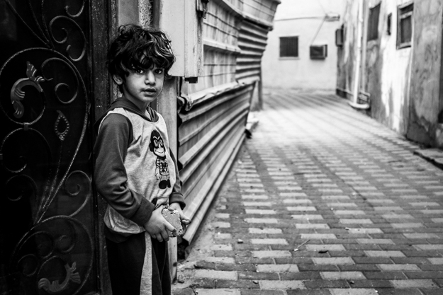 ولد صغير يقف عند باب منزلهم. من الجيد أنه لم يرمي تلك الحجرة بإتجاهي عندما كنت أصوره