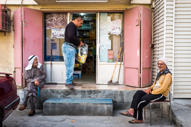 بجانب هذه البقالة الصغيرة هؤلاء المسنين على اليمين واليسار، ولقد صدف أنهم أخوان !