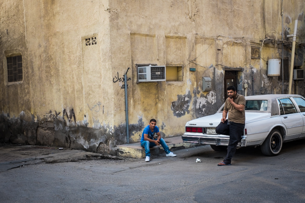 هذا إلتقاط مثير للإهتمام بالنسبة لي. أشخاص، سيارة متعطلة، مبنى قديم، وبعض الكتابات على الجدار وهي كتابات مألوفة في هذا الحي ولكن عليها أكس كبير وهو شيء غريب ومثير للإهتمام !