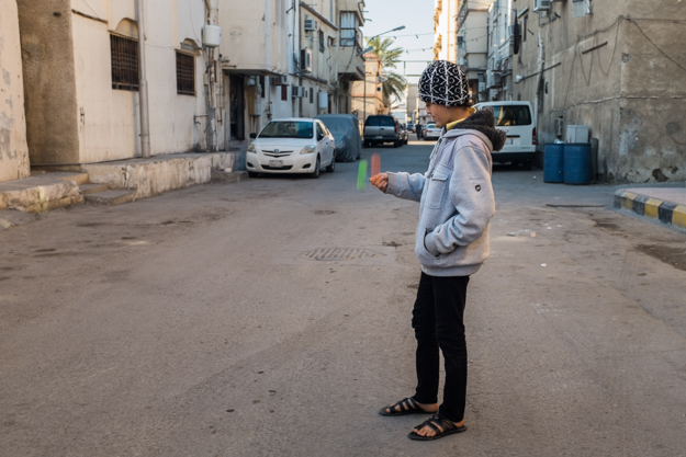 حتى في المناطق القديمة هذه الأيام التكنولوجيا حاضرة، أحد الصبية يستخدم جوال والأخر يستخدم آيباد يخص أخته !