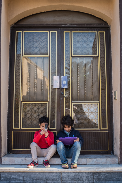 Even in the old areas nowadays the technology is everywhere, one of the boys is using a mobile and the other is using his sister’s iPad !