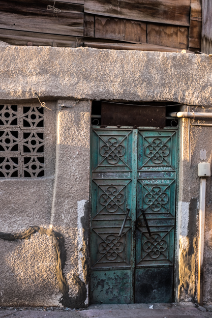 مدخل أحد المنازل القديمة، ذكرت مدخل بسبب وجود سجادة قديمة سوداء أمام الباب
