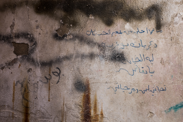 كلمات ملونة على هذا المنزل الصغير والمهدوم