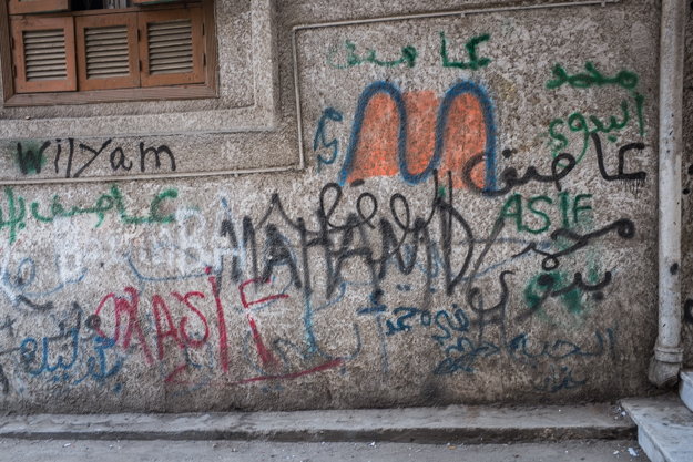 بعض كتابات الجدران والتي كانت كثيرة ومنتشرة بالحي