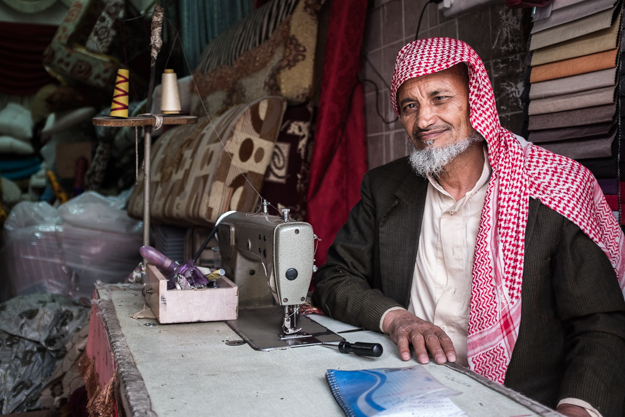 قررت الخروج إلى الشارع الرئيسي للحي حيث هناك بعض المحلات وإلتقيت بهذا الخياط والذي كان سعيداً بأنني أقوم بإلتقاط له صورة
