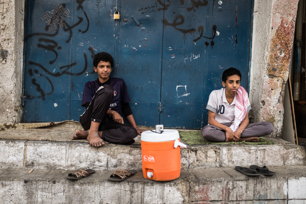 These kids were playing a famous table game in the streets while the others sitting watching them, notice how 1 kid is against 2, I asked him why he said he was better and he can take them both easily !