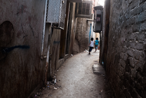 It was 3 hours before sunset and the sun light can barley get between the buildings and the alleys
