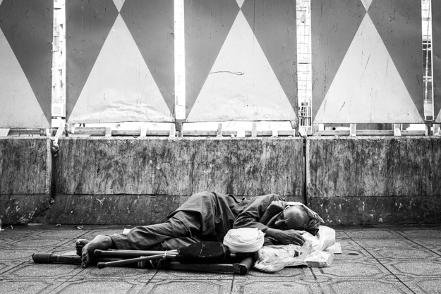 عندما بدأت بالتصوير من حدود المسجد الحرام رأيت هذا المشهد والذي يعتبر مشهداً عادياً جداً في مكة، لأنه يوجد الكثير من المشردين هنا ومنتشرين في كل مكان حول الحرم. هذه الصورة تبعد بضعة أمتار عن حدود الحرم