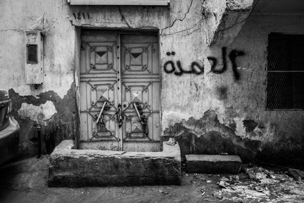 مدخل لأحد المنازل القديمة والمغلقة هنا