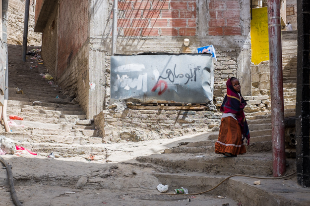 هذا أحد عتبات الدرج الطويلة التي شاهدتها والتي تقود مباشرة إلى حي المسفلة وهو حي يقع فوق جبل ويحتوي على البيوت القديمة ذات الطابوق الأحمر، لقد كان الطريق طويلاً إلى الأعلى ! لذلك وضعت ٤ صور توضح طول هذا الدرج