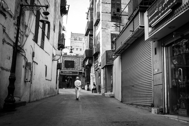 مرحبا بكم جميعاً، تدوينة اليوم ستكون من جدة أو بالأصح جدة القديمة والتي تعتبر أحد المناطق التاريخية المهمة في المملكة العربية السعودية. قمت بزيارة سوق البلد مع اثنين من الأصدقاء المصورين الذي تشرفت بمقابلتهم هناك. علي القول بأن هذه هي الزيارة الأولى لي لجدة البلد والزيارة الأولى لجدة نفسها من ٢٠ سنة، وهي تختلف عن الصور التي رأيتها عنها أقصد جدة البلد. اذا استثنينا زحمة السوق والذي صادف أنه يوم الخميس، المباني هناك مذهلة إلى حد كبير ! فهي قديمة حتى ٥٠ سنة وبعضها يحتوي على ٦ طوابق ! ولكن وبالتحديد الأمور التي لا أراها هناك مباني مهدومة بعضها يتم هدمه لأنها أصبحت غير مستقرة واخرى تهالكت وهدمت من ذاتها ! وأيضاً هناك الكثير من المباني المغلقة بإحكام ومهجورة. في الحقيقة كانت جولة ساعتين مشي بين السوق والمنطقة نفسها ولكني شعرت أنني غير راضي بالوقت والصور التي إلتقطتها وأردت العودة مرة اخرى، لذلك عدت من جديد في الصباح الباكر في اليوم التالي. لأكون واضحاً أكثر هذه التدوينة ستكون من يوم الخميس بالمساء وستحتوي على صور للأشخاص أكثر من المباني، أما التدوينة القادمة ستكون في يوم الجمعة صباحاً وستكون عن المباني وبعض الأشخاص الذي يعيشون هناك. استمتعوا بهذه التدوينة !