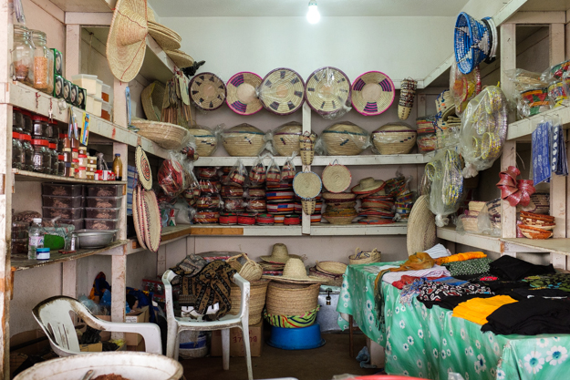 محل شعبي يقوم ببيع منتوجات مصنوعة يدوياً كانت ولا تزال تستخدم في هذه المنطقة، كانت هناك امرأة جالسة ولكنها رفضت أن تكون في الصورة