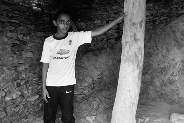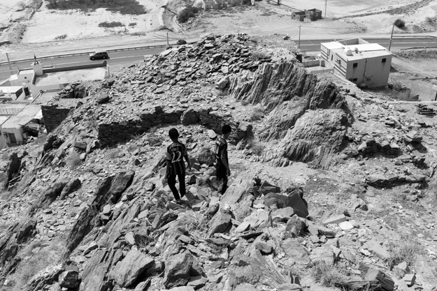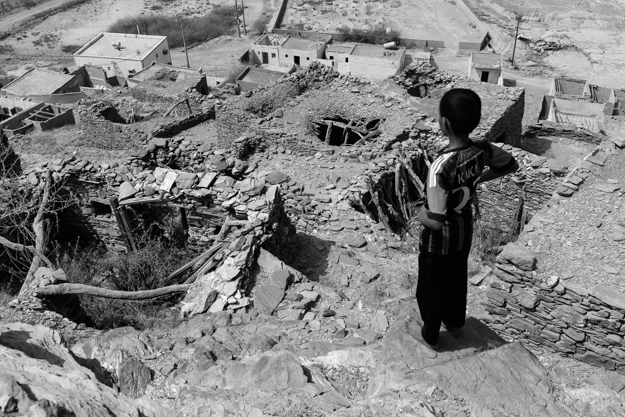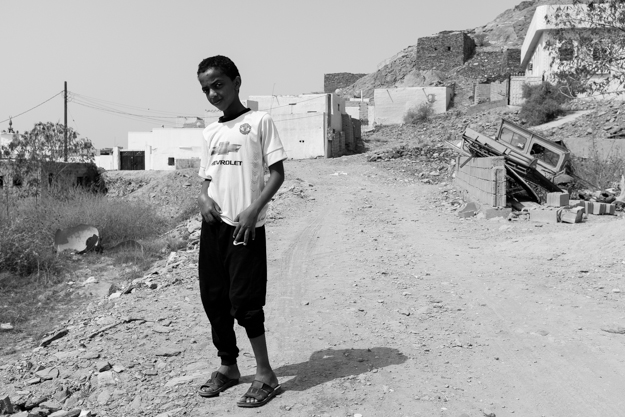 Before I arrive to Muhayil, I was noticed the small villages around me looking for something to make me stop and photograph. Then I saw a small mountain filled with historical and old houses from the bottom to the top ! when I stopped I noticed this little boy and he was Waleed. He was kind enough to take me to these houses and was explaining about them.