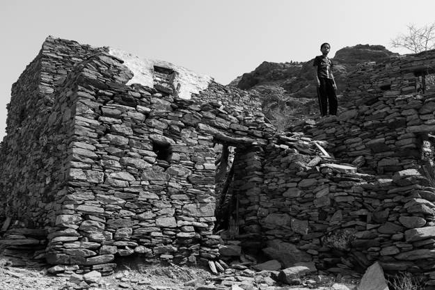 Climbing up to see the house from the top and in this case it all have broken down, only the main pillar which is a big piece of a tree leg still holding. Oh Waleed’s nephew joined us 🙂