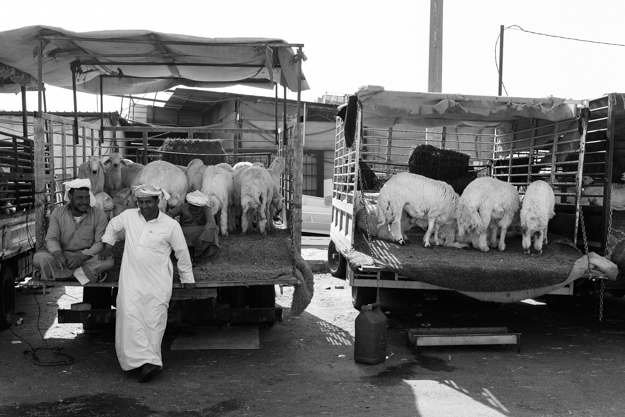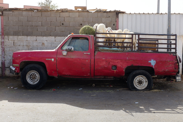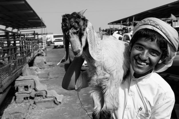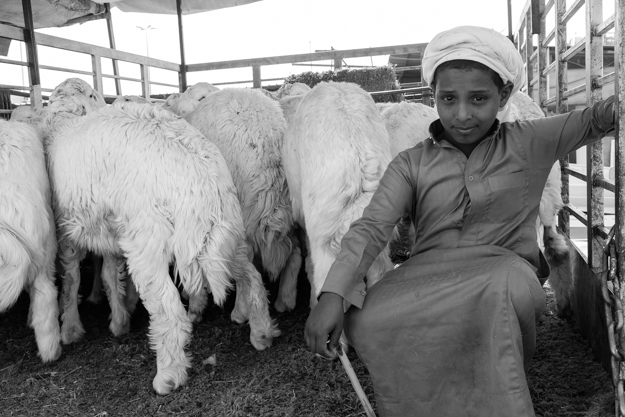 صبي يعمل هنا يقوم بتوصيل أحد الأغنام إلى سيارة المشتري بحملها على كتفه، يقول أن هذه الطريقة أسهل بكثير من أن يقوم بسحبها من على الأرض