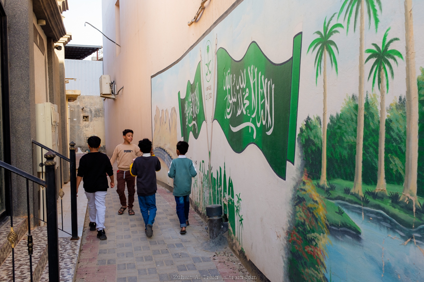 In one of the alleys I saw big painting representing Saudi Arabia & specially AlHasa